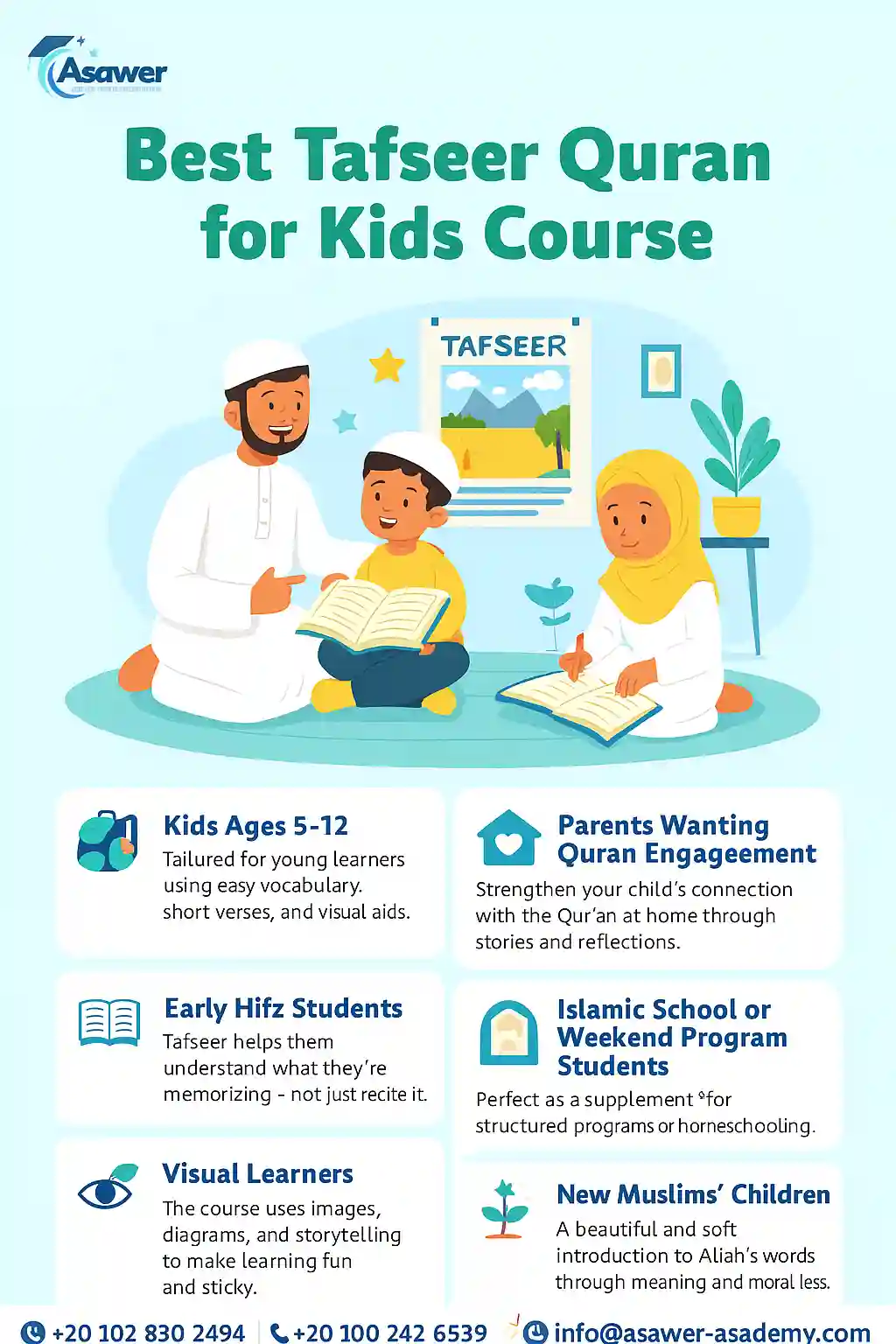 - Simple Language Tafseer – Explain ayat in a way children understand and relate to.