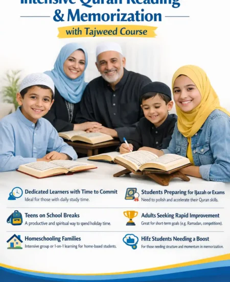 Master the correct reading of the Quran with proper Tajweed rules. Learn pronunciation and fluency in recitation.